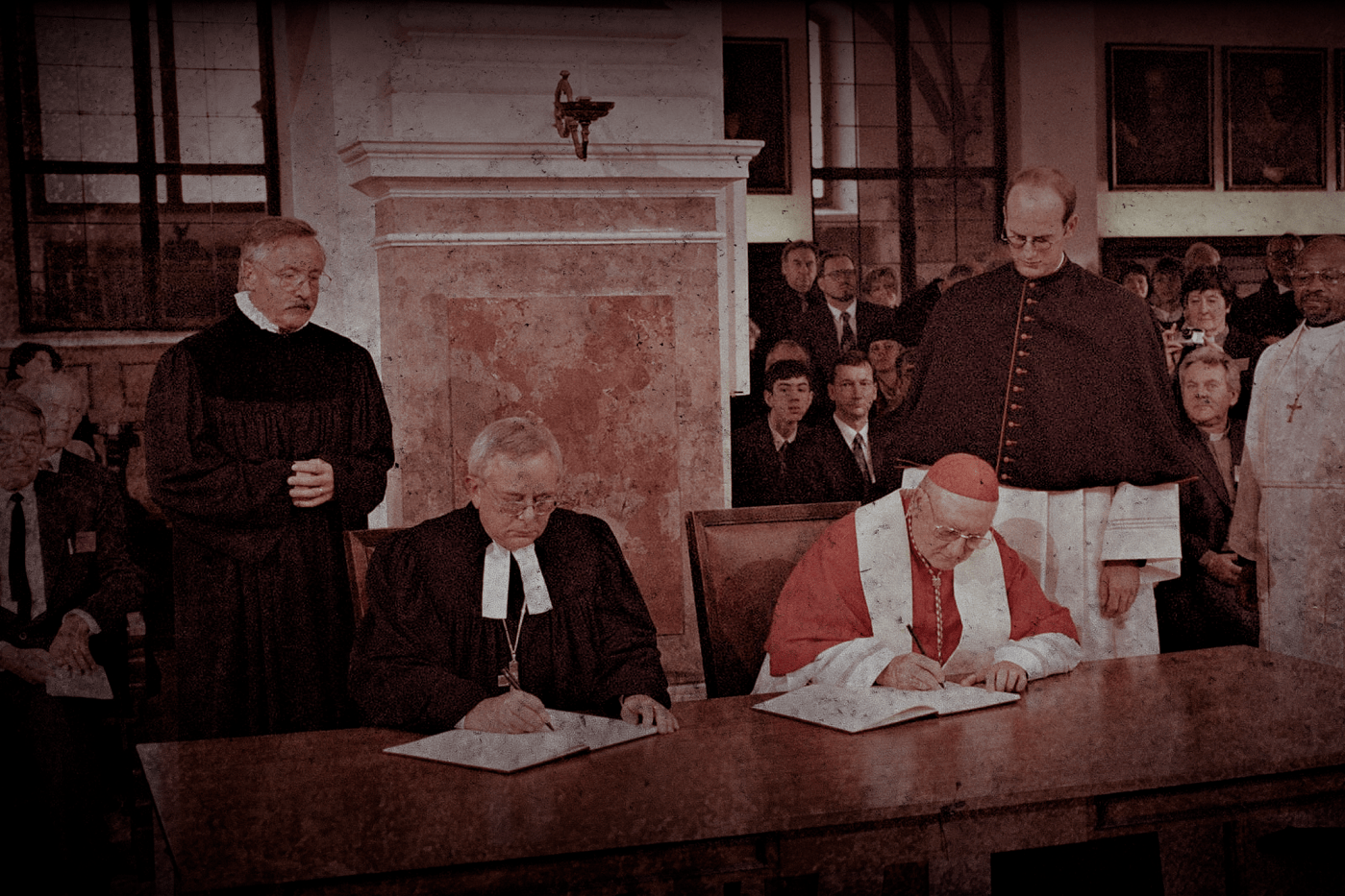 Esse “entendimento comum” que eu esperava há oito anos, hoje, graças a Deus, tornou-se uma realidade encorajadora. Em 31 de outubro passado, na cidade de Augsburg, foi solenemente assinada uma Declaração Conjunta na qual Luteranos e Católicos expressaram um consenso sobre as verdades básicas da doutrina da justificação. Esta conquista do diálogo ecumênico, um marco no caminho para a unidade plena e visível, é o resultado de um intenso trabalho de pesquisa, encontros e oração.